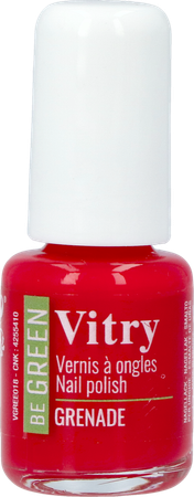 Een nagellak resoluut "Green", made in France, samengesteld uit biologische en natuurlijke ingrediënten. De Vitry Be Green nagellak is een formule met solventen van biologische oorsprong om ook de planeet te beschermen (plantaardige solventen van hernieuwbare grondstoffen : aardappel, mais , tarwe, cassave en katoen). Deze Vegan formule verbindt kleurintensiteit met een zuurtsofdoorlatende formule voor resistentere en gezondere nagels, zonder in te boeten aan glans, houdbaarheid of droogtijd. De fyto koraal, een biokeramisch actief bestanddeel, genaamd het poeder van de oceaan, maakt de nagels sterker en gezonder. Het extra platte en afgeronde borsteltje volgt perfect de vorm van uw nagels en maakt het aanbrengen zeer gemakkelijk. * Norme ISO 16128
